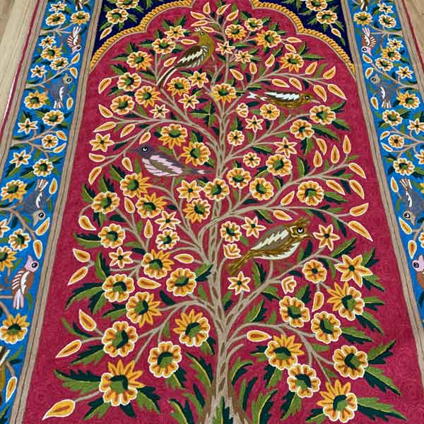 The design is typical display of Chinar flowers and trees seen in Kashmir.