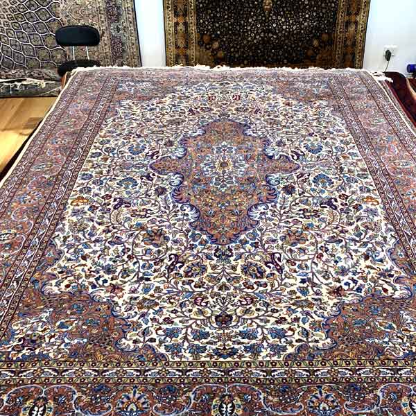 Kashmir Superfine Wool Rug. The rug has exquisite craftsmanship and details are stunning.This Kashan Rug has very thick pile will undoubtedly last for generations