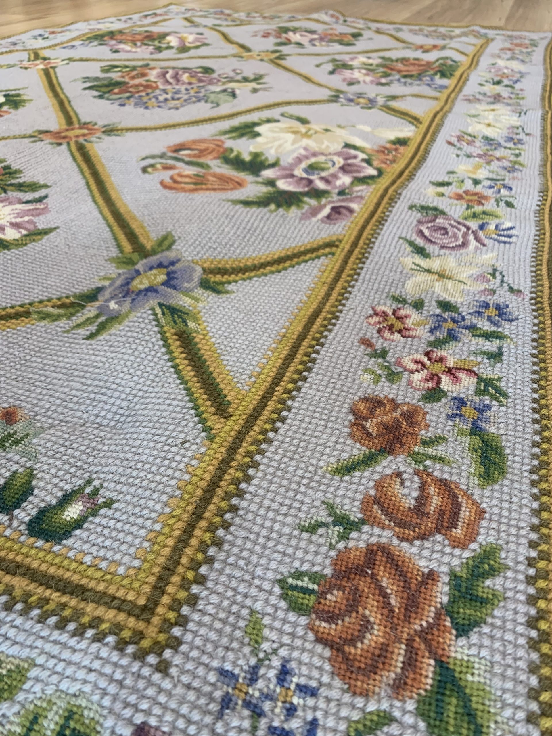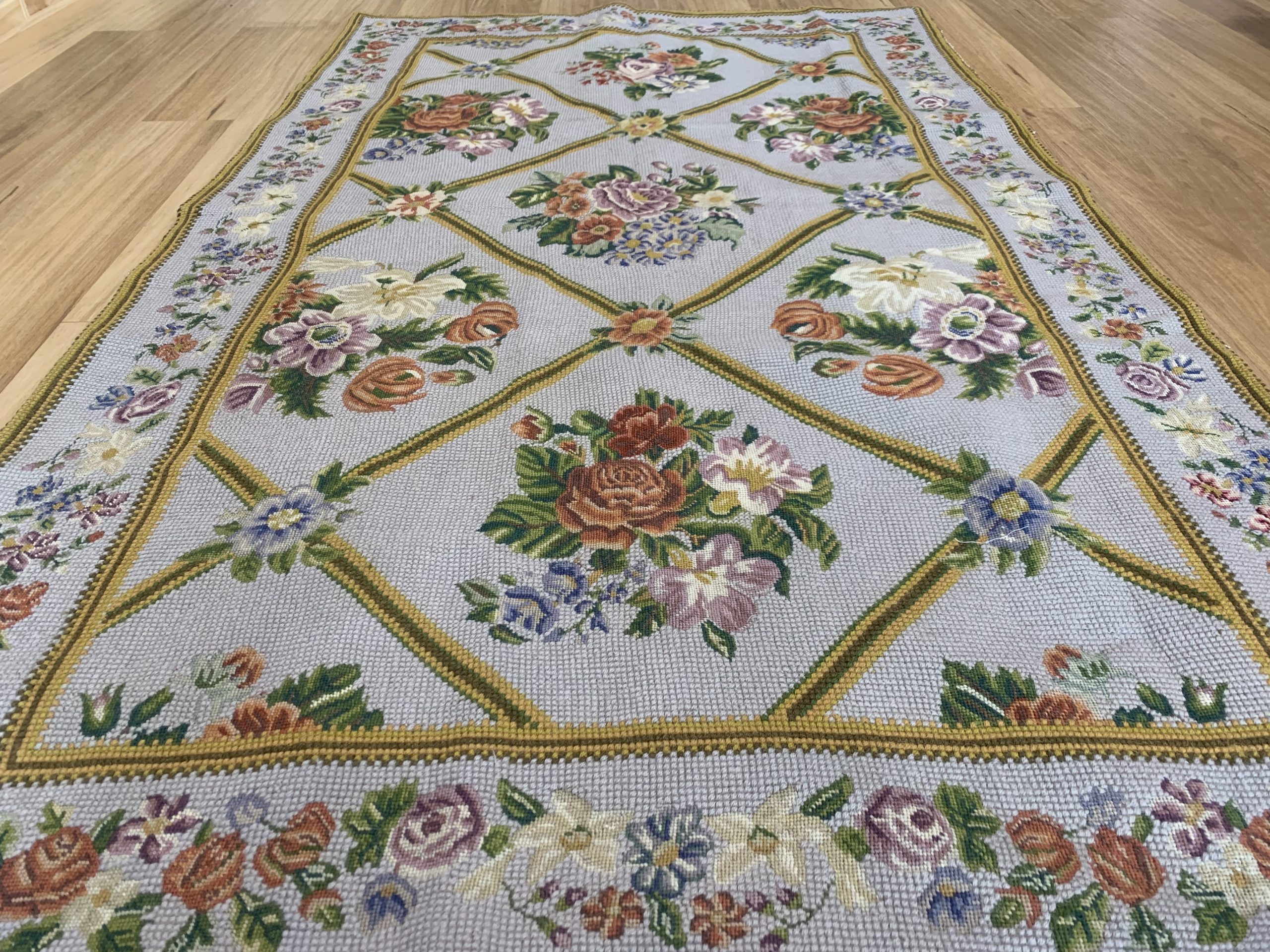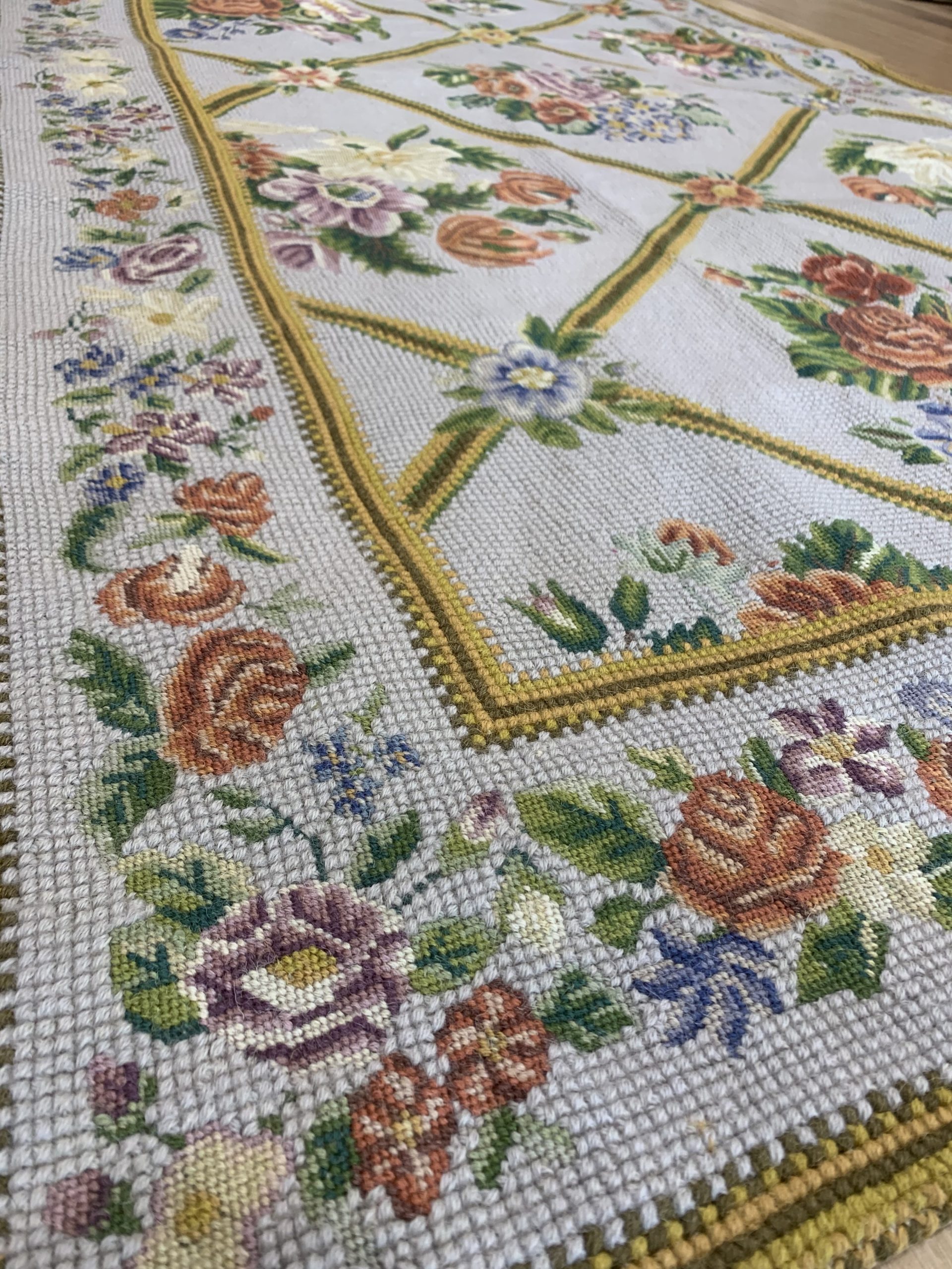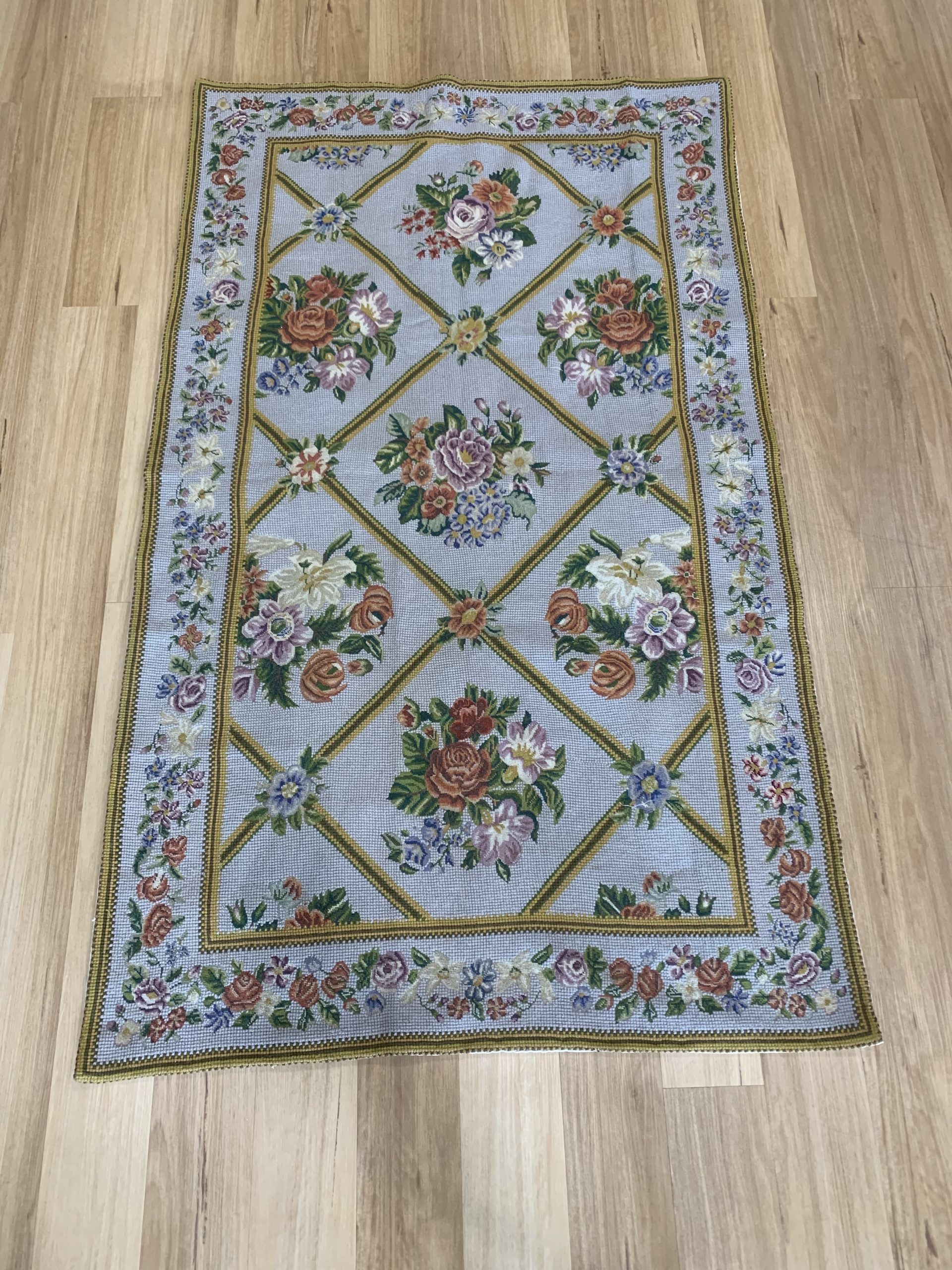 Incredible Chain Stitch Wool Rug 198×120 cm, Kashmiri Floral Design