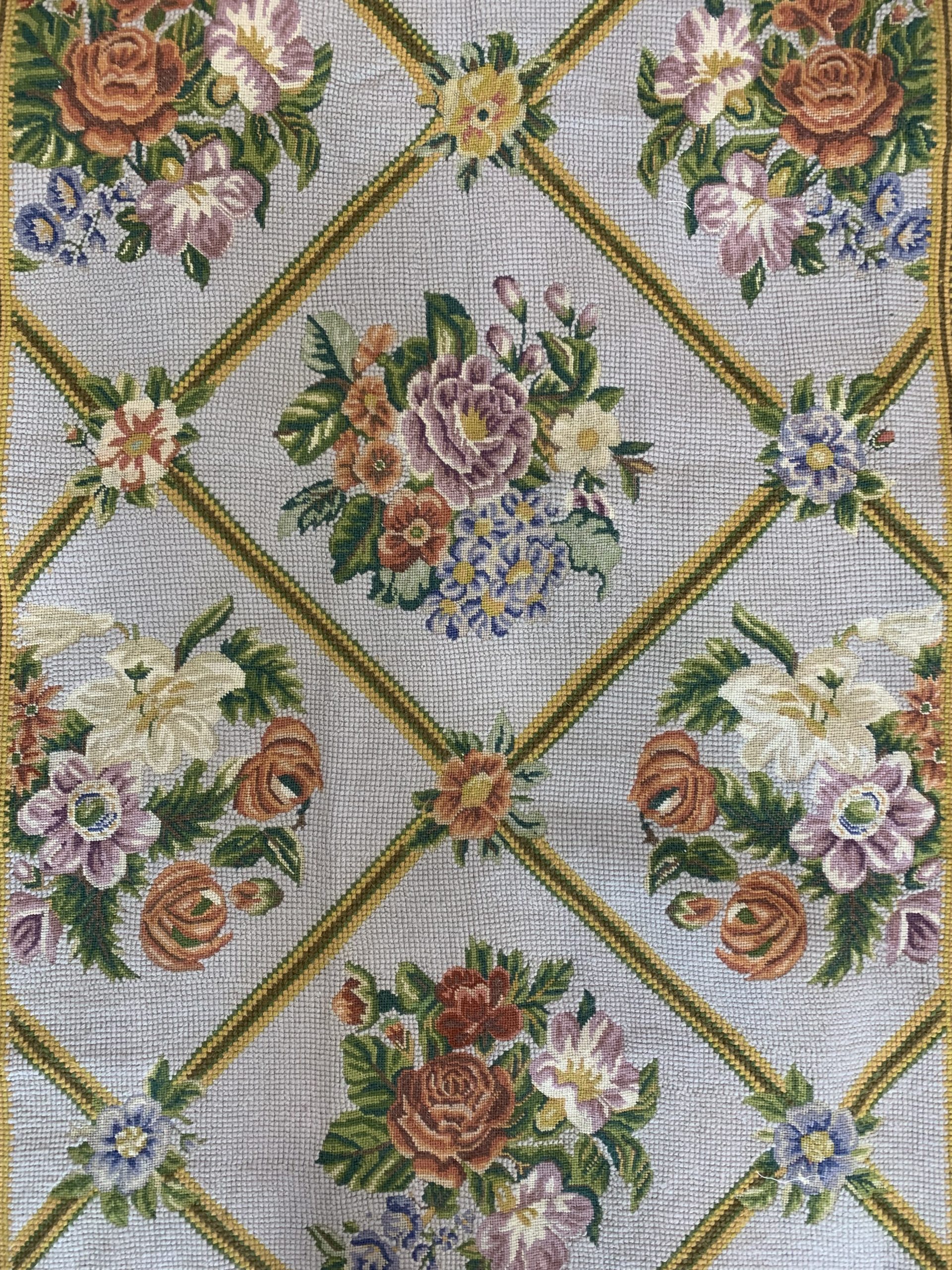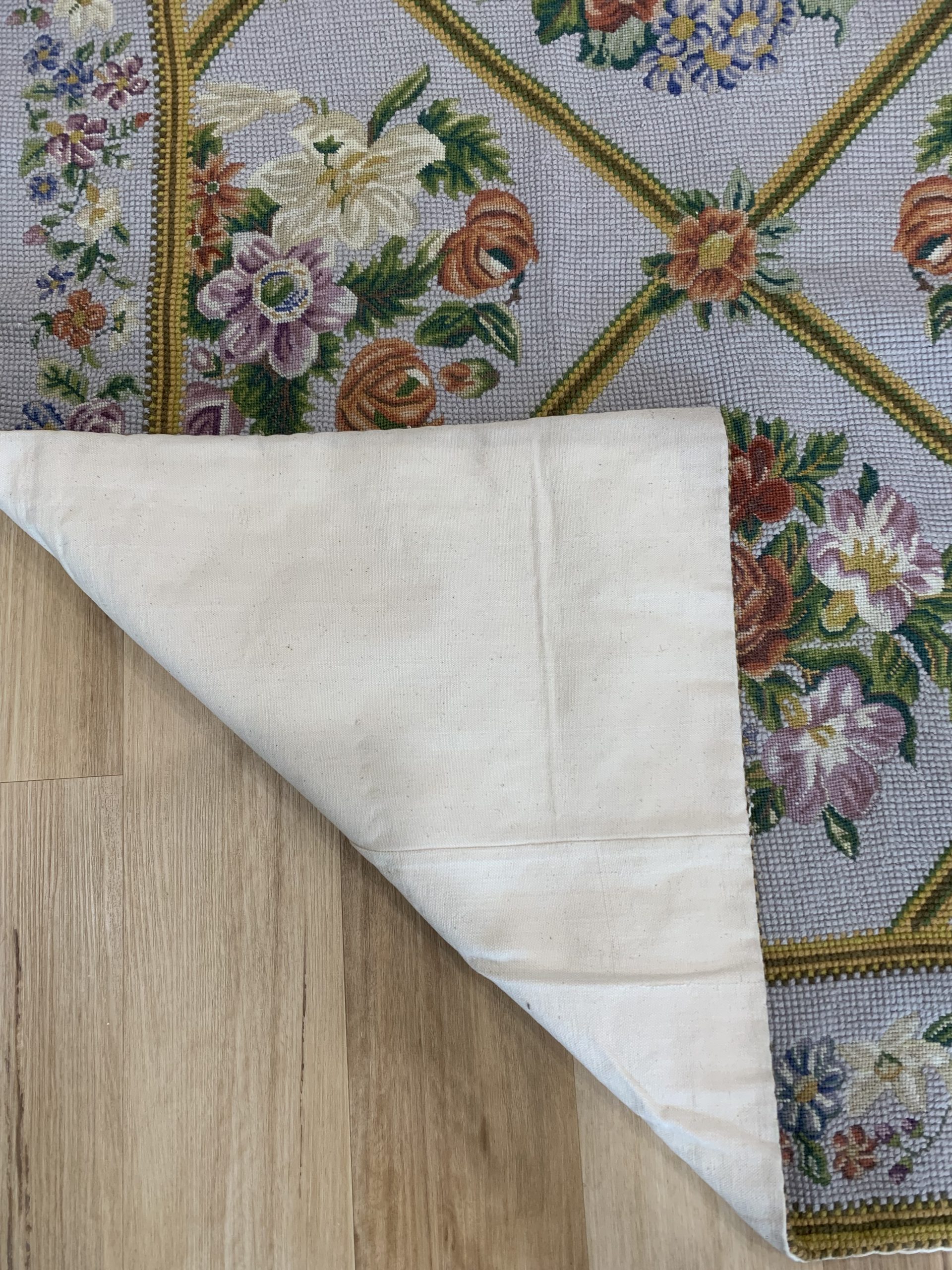 - Materials: Pure Wool Chain Stitch on a fine cotton foundation.
